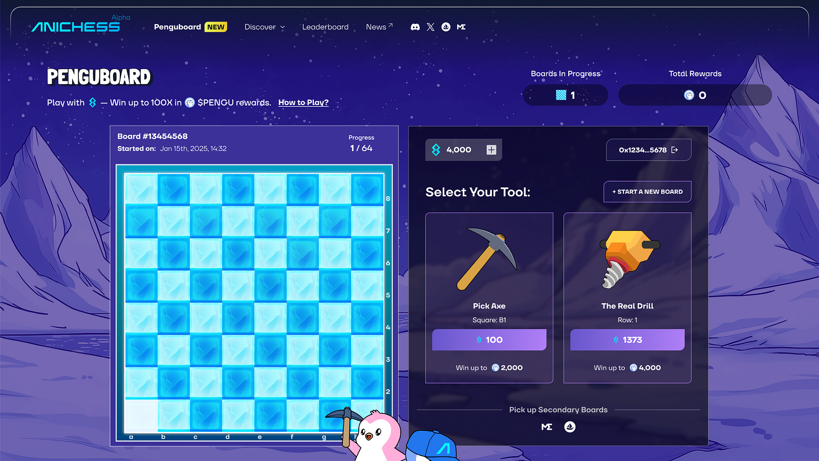 PenguBoard is a way to join the takeover even without chess skills — a crush-ice-to-win experience with hidden $PENGU rewards