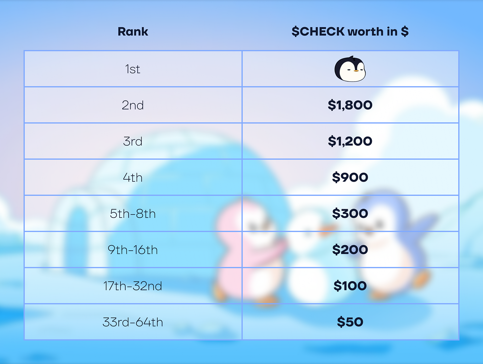 Prizepool: 10K in $CHECK + Lil Pudgy for the Champion