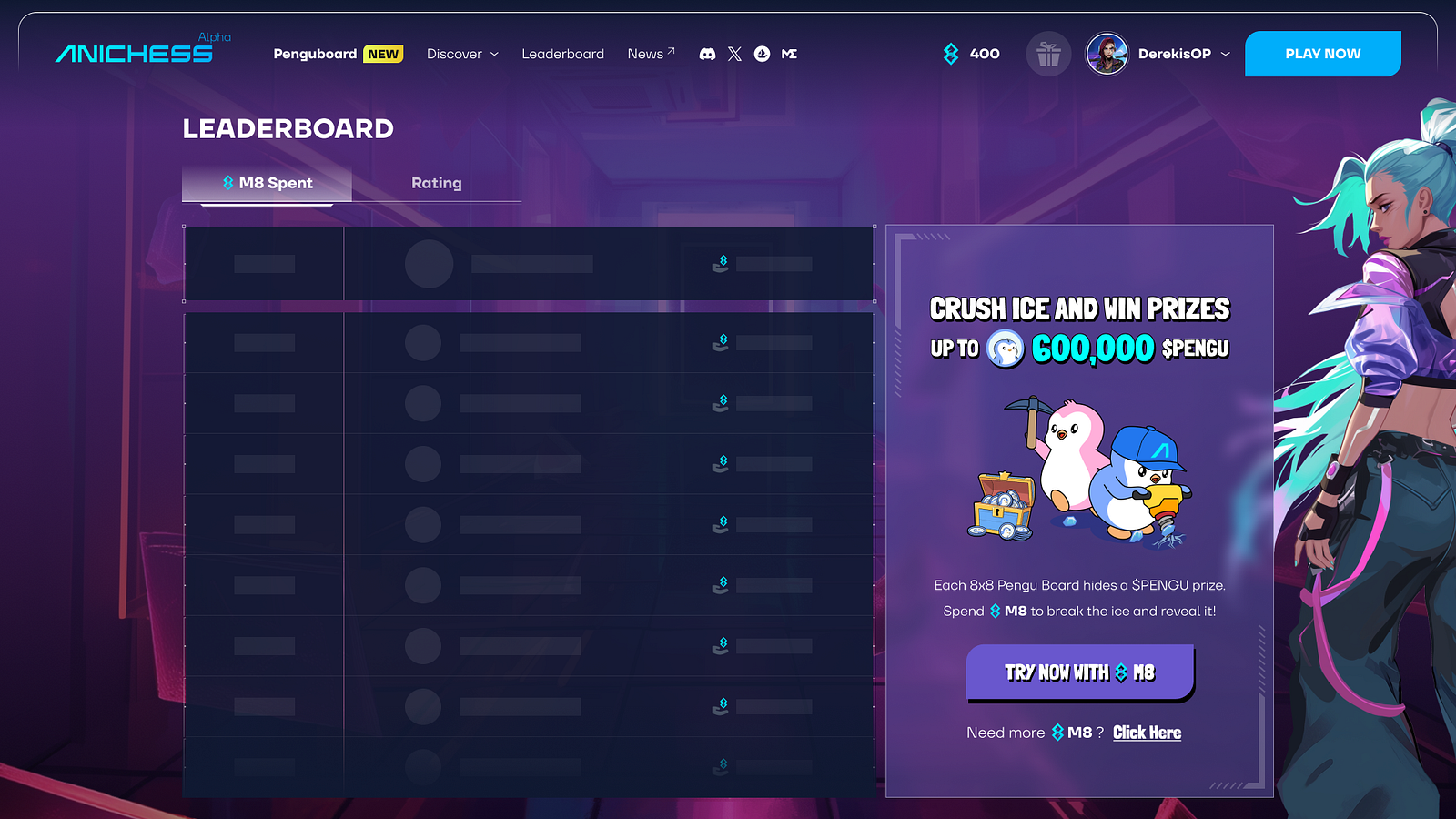 M8 is the on-chain point system for the Anichess ecosystem. It’s needed to start and play PenguBoards and to climb the leaderboard.